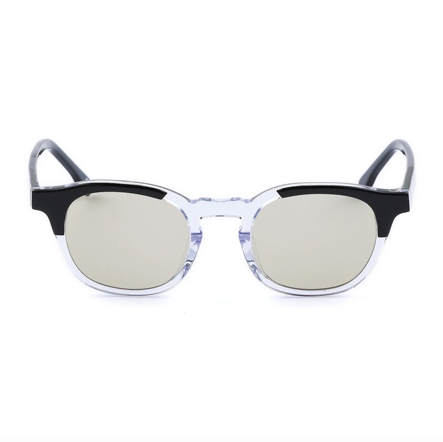 【OWN】 ヴィンテージシェードをベースにしたツートンモデル バランスの取れたシンプルなシルエットと、アセテートを2枚張りしたツートンカラーが特徴的なモデル。 ボストン型のヴィンテージシェードをベースに制作し、普段使いに相応しい飽きの来ない仕上がりとなっています。 スタイリングの締めにバチっと決めるもよし、ラフな着こなしに合わせてもよしの万能タイプ。 持っておくと必ず重宝する頼もしい1本。 素材 フレーム素材:アセテート レンズ素材:CR39 サイズ 【上面】 ①ネジ間 130mm ②フロント前面 141mm 【前面】 ③ブリッジ 23mm ④レンズ幅(フレーム内径) 48mm ⑤天地幅(フレーム内径) 40mm 【側面】 ⑥テンプル 145mm