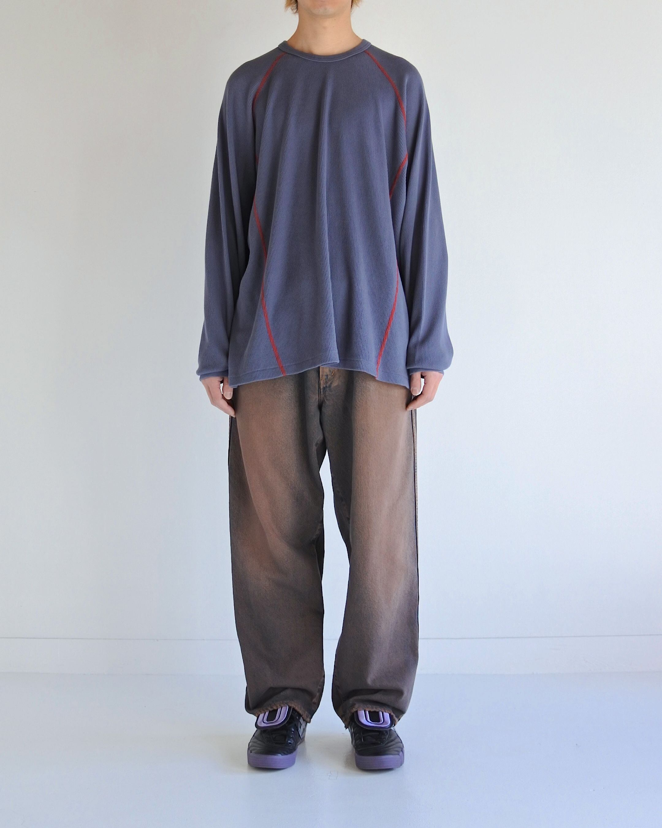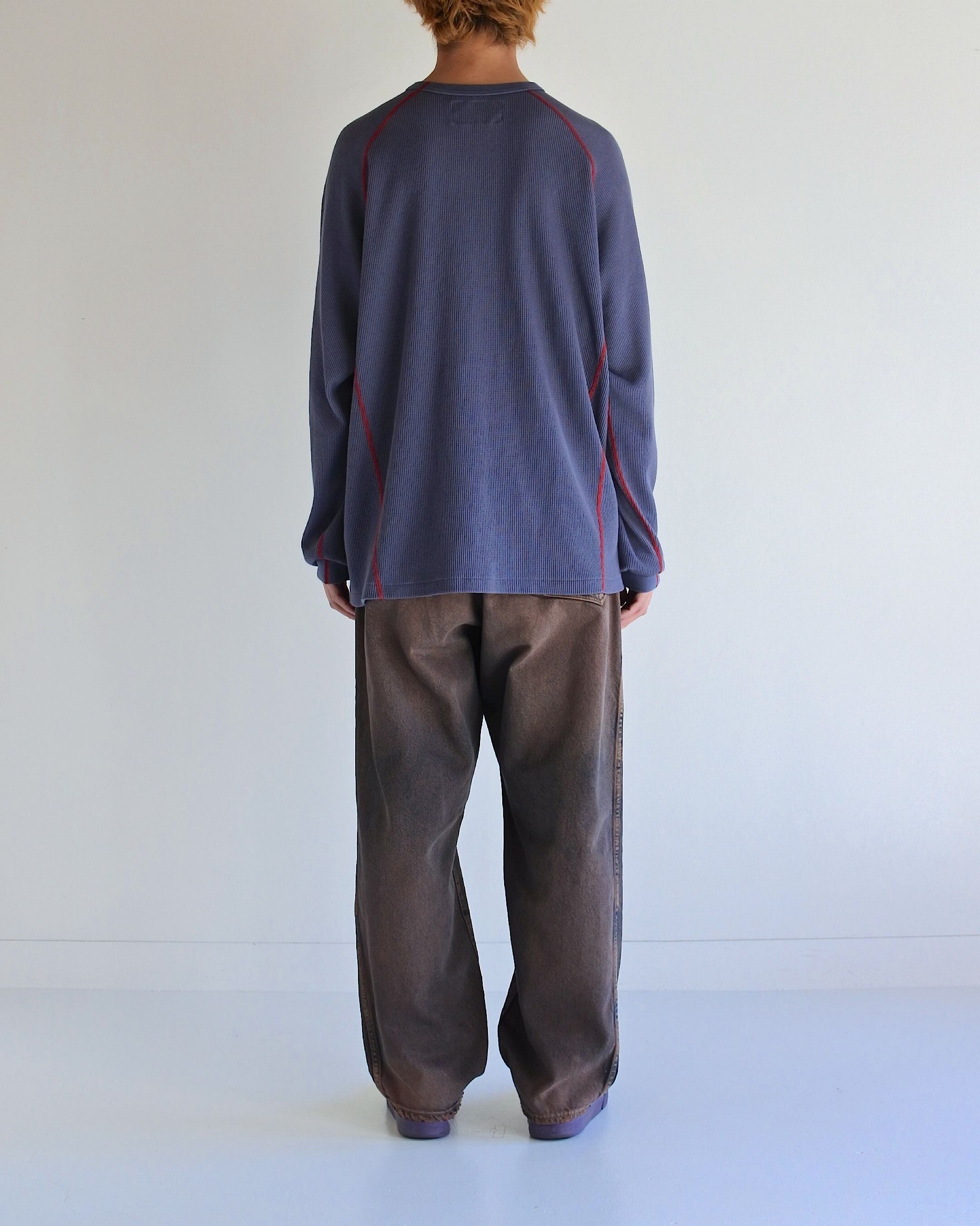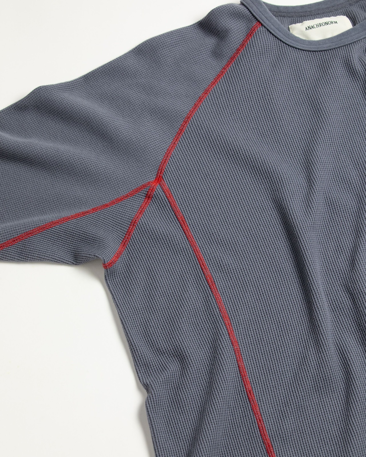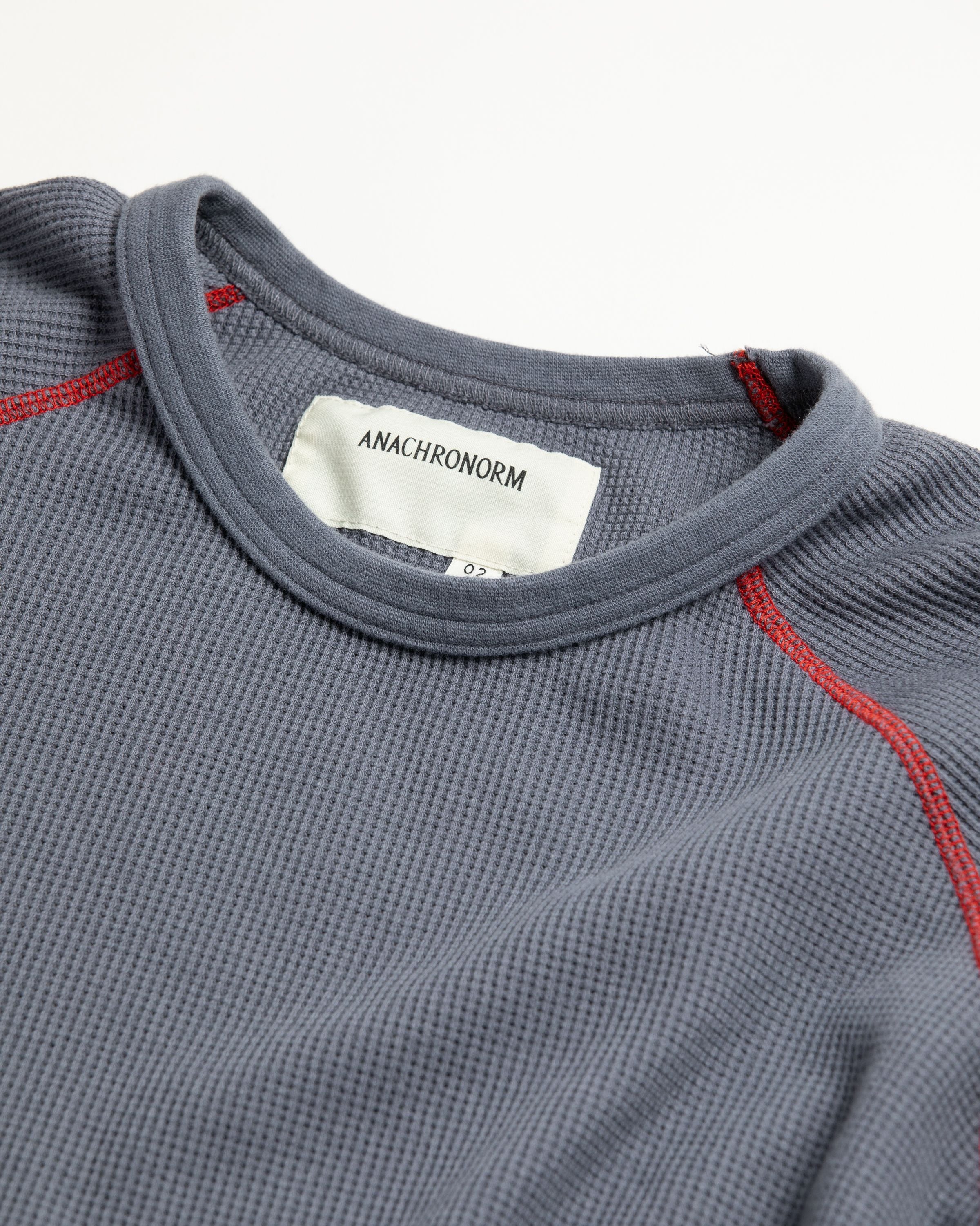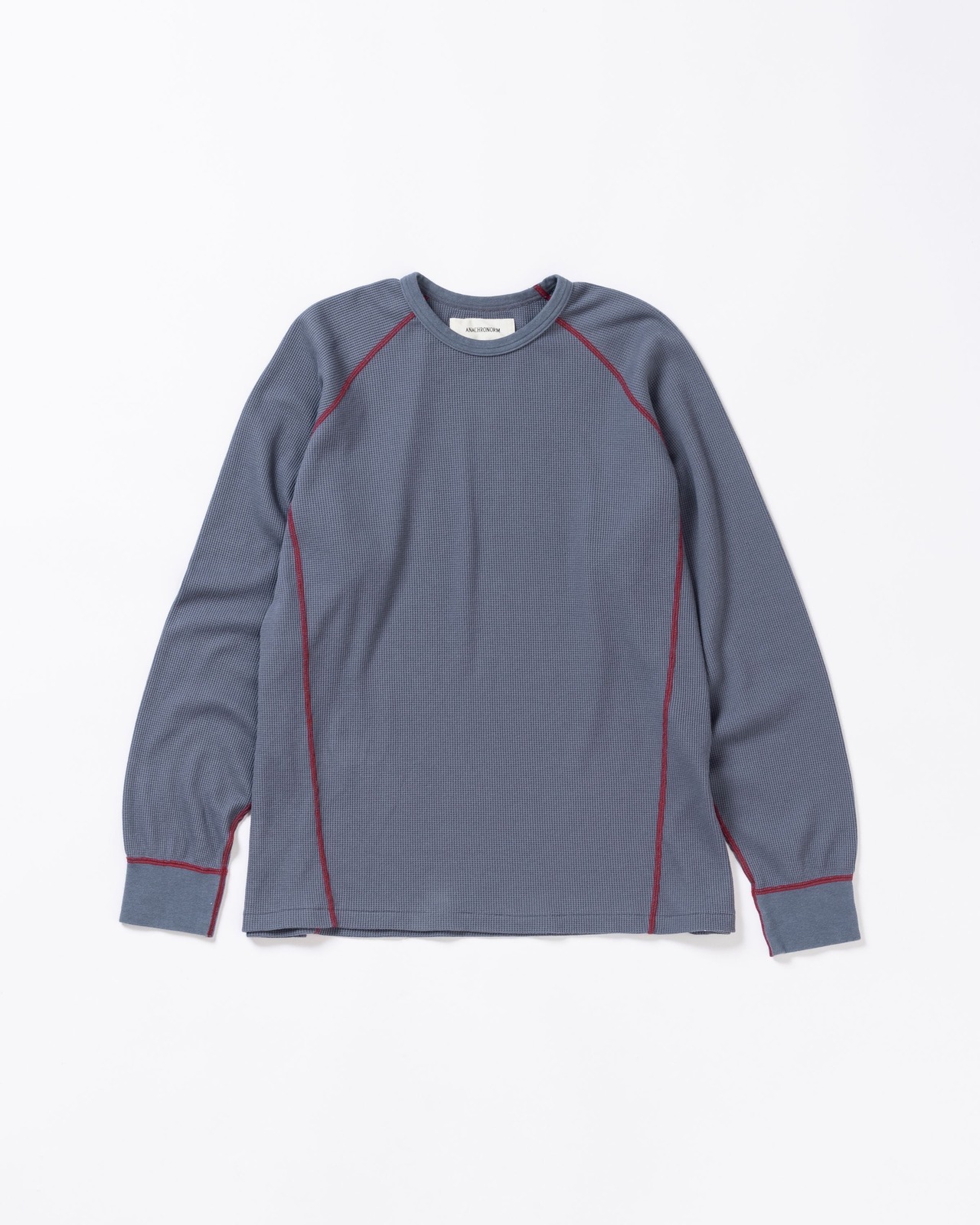 【ANACHRONORM】DESIGN STITCH WAFFLE L/S T-S - BLUE GRAY