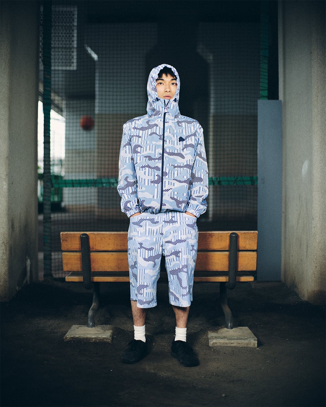【SPECIAL GUEST】 Shirt Pattern Camo Nylon Hooded Jacket - Light Blue