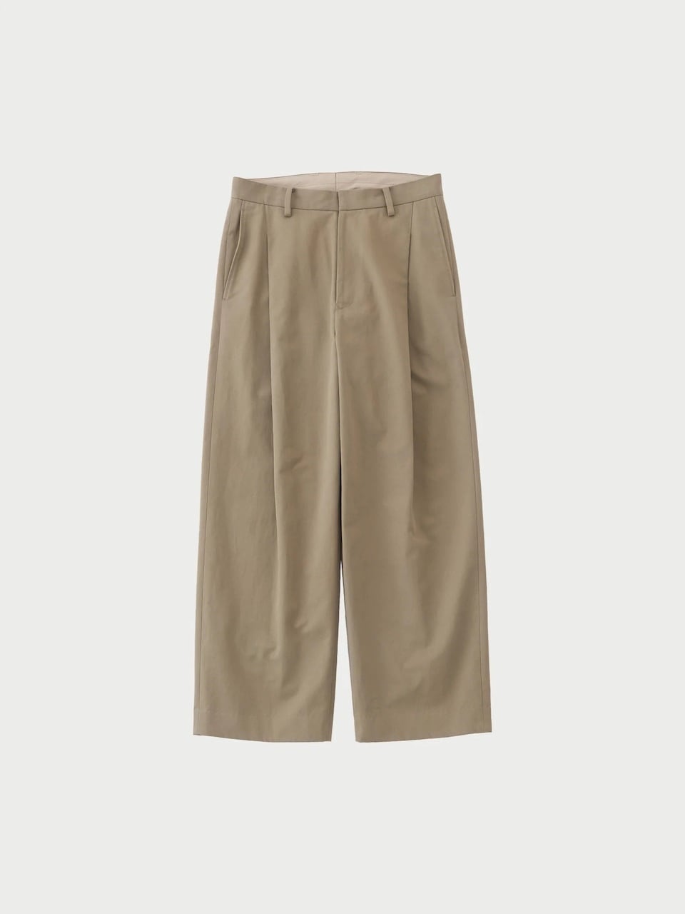 オーガニックコットンのチノクロスを使用した1タックパンツ。