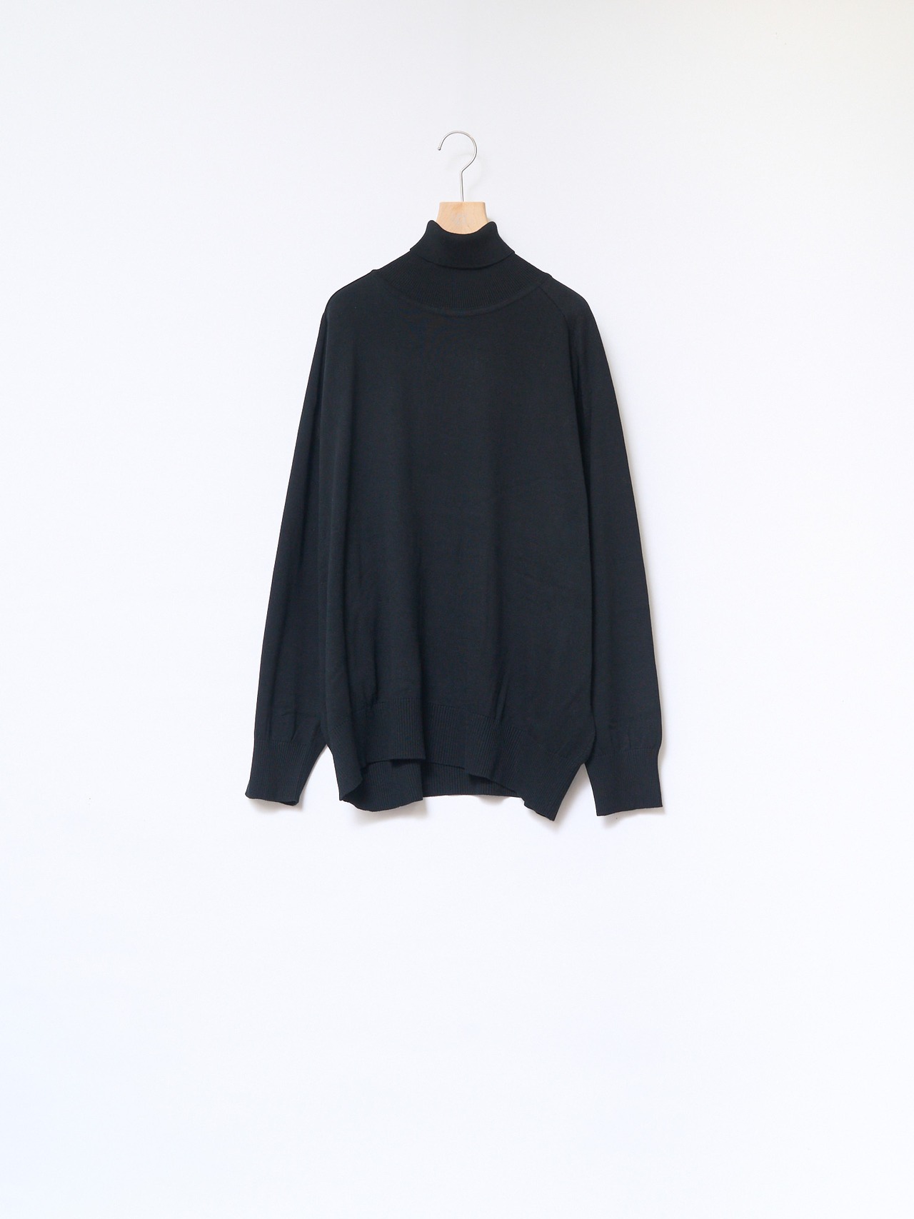 コットンレーヨンシルク糸を使用したタートルネックニット。