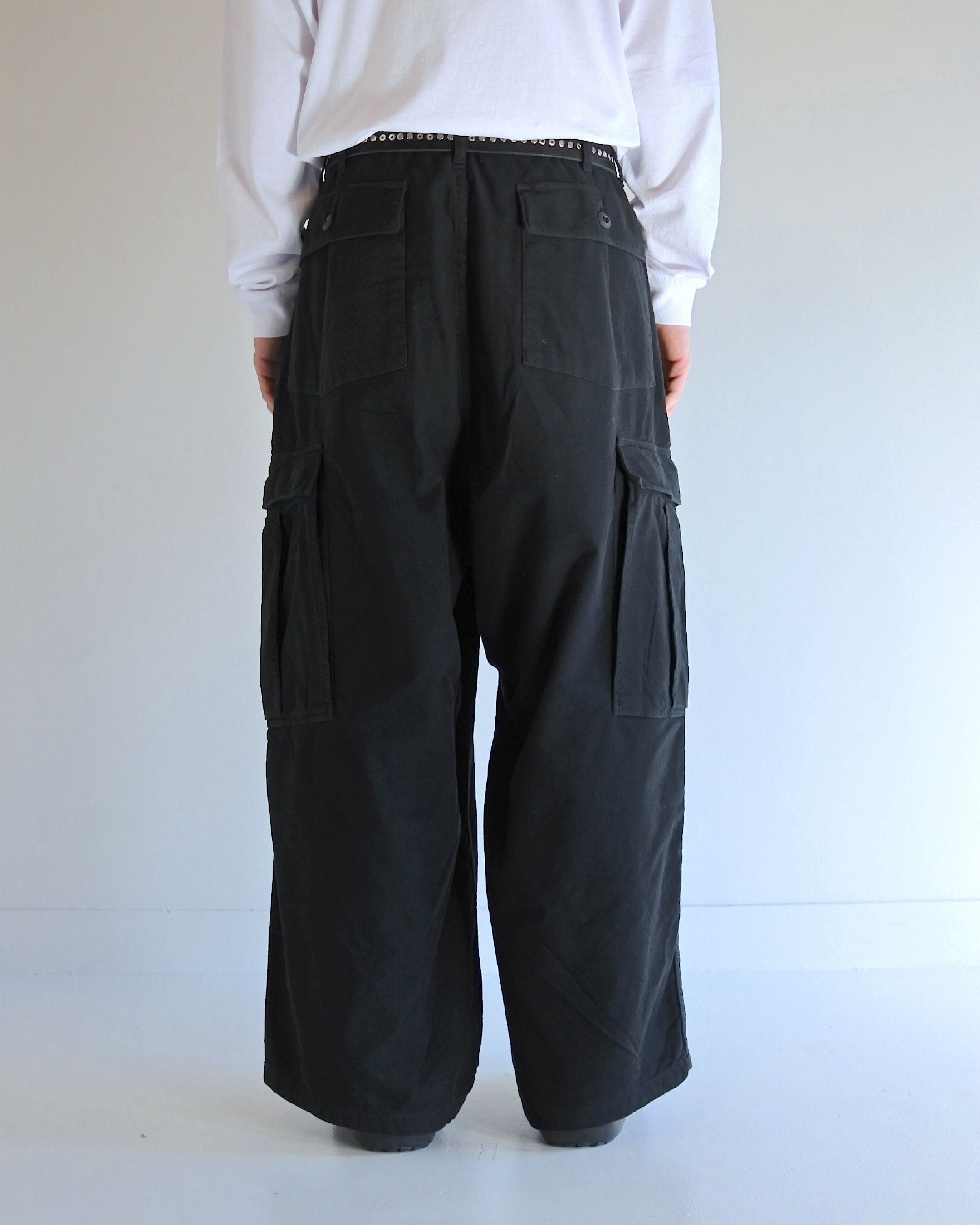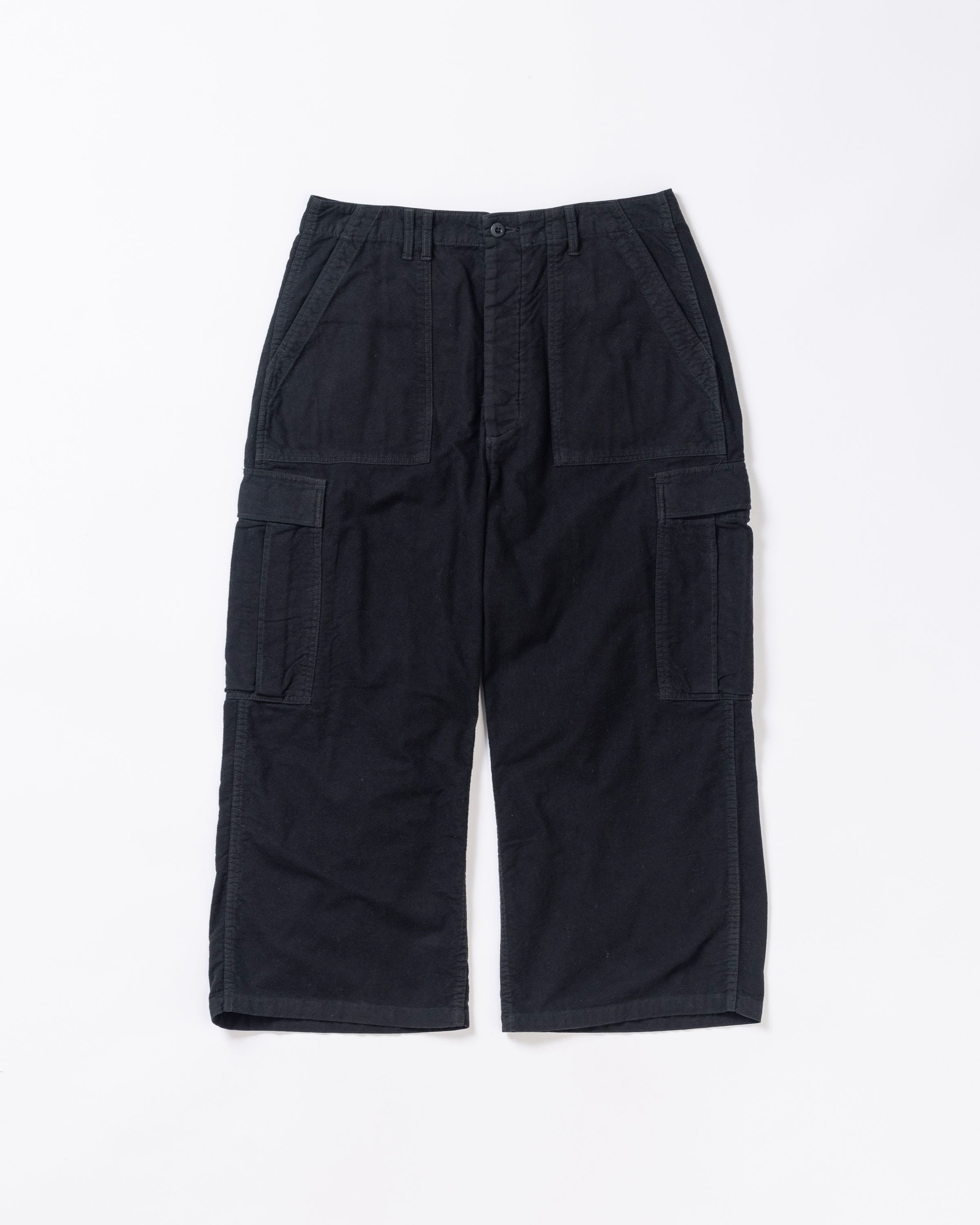 【ANACHRONORM】COTTON SUEDE WIDE BAKER 6P PANTS - BLACK