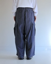 ベイカーパンツにカーゴポケットのディティールを追加することで機能性が向上したワイドシルエットのパンツです。