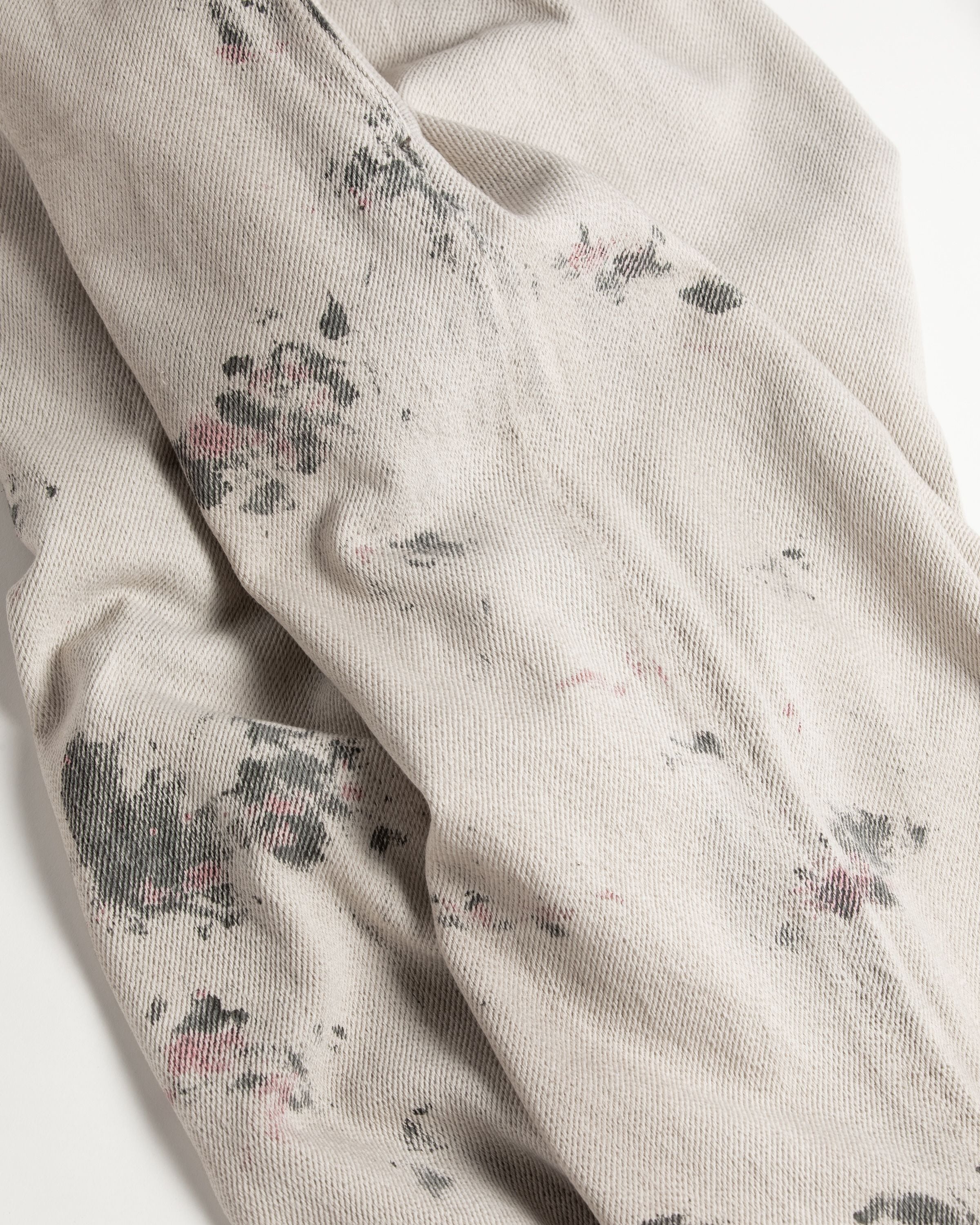 加工を施した後に洗いをかける事で染料が剥がれ落ちて出来上がる絶妙な表情が特徴。