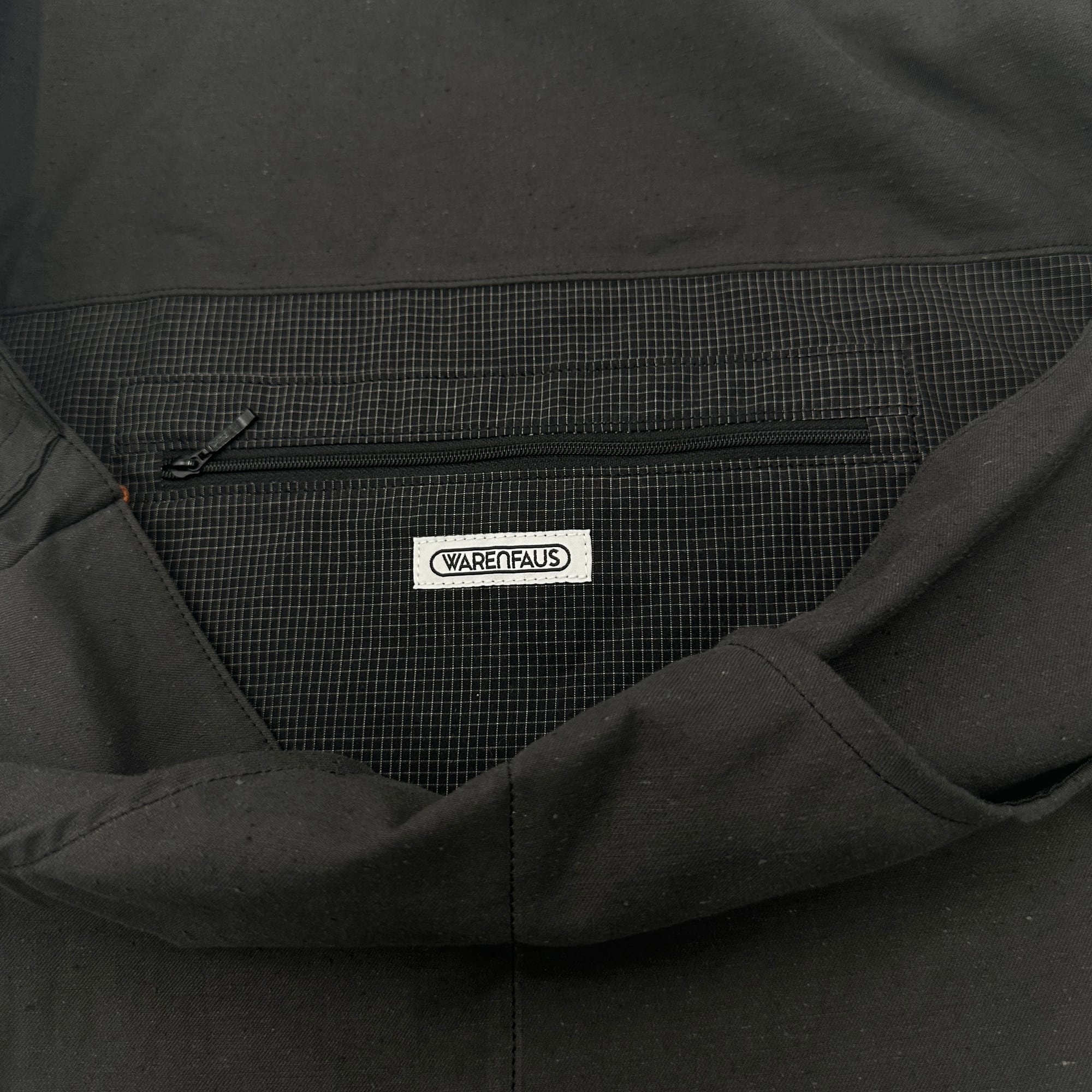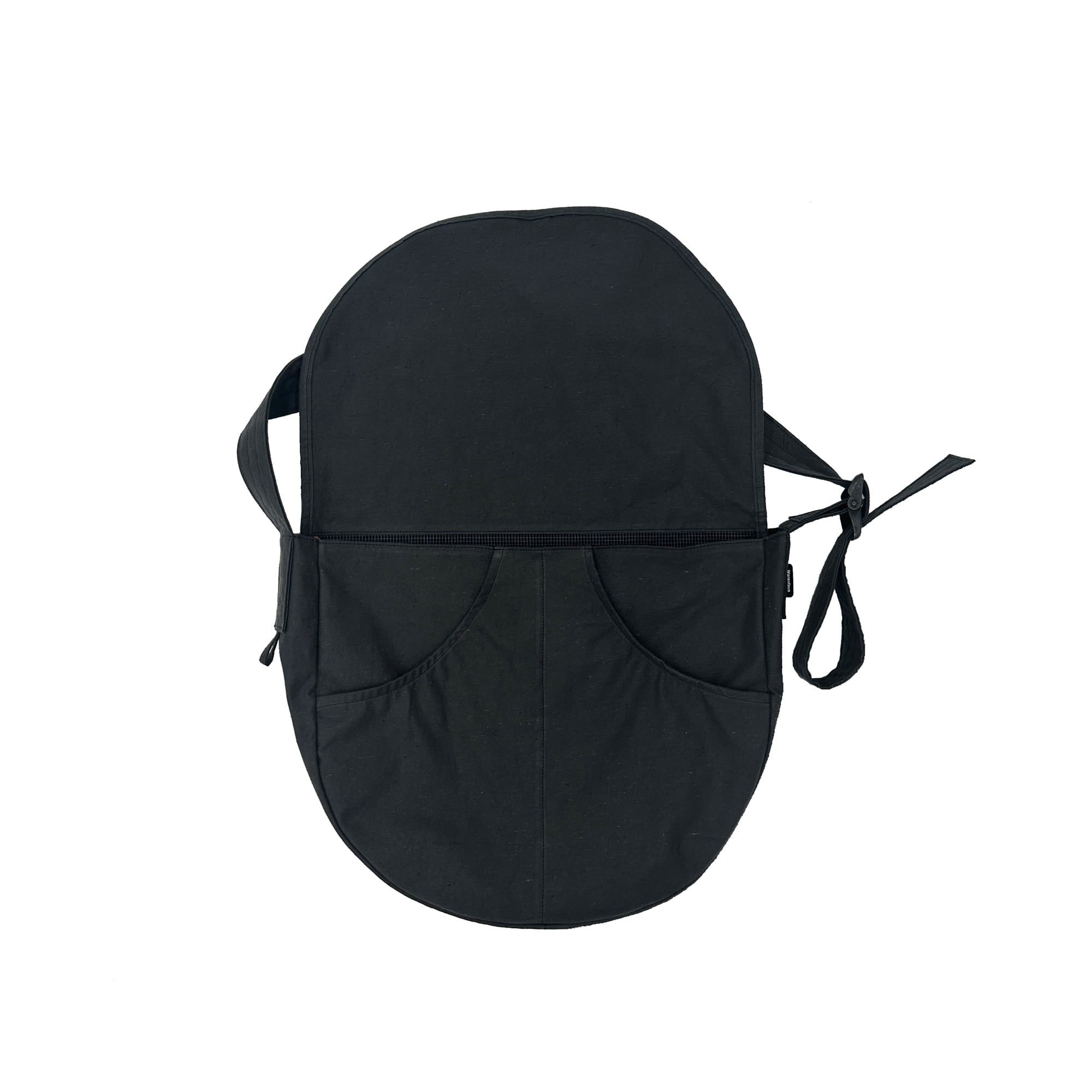 フラップをあけたボディ前面にはハンティングジャケットを参照した曲線のダブルポケットが有り、背負った状態でもスムーズにアクセスしやすく、頻繁に取り出す小物の収納に最適です。