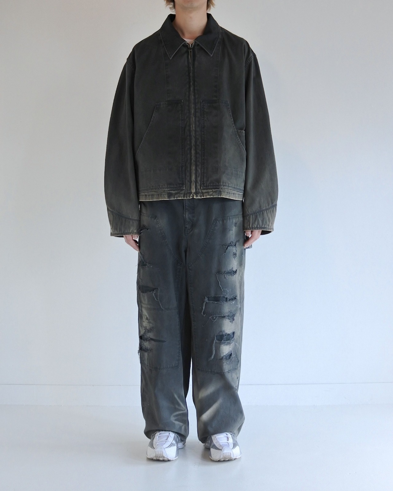 シルエットは、ゆとりのある身幅とややクロップド丈であるため