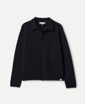 ニットカラー、コロゾナットボタン、そしてリラックスフィットのデザインは、ほのかなレトロな雰囲気と現代的な気楽さを融合させています。