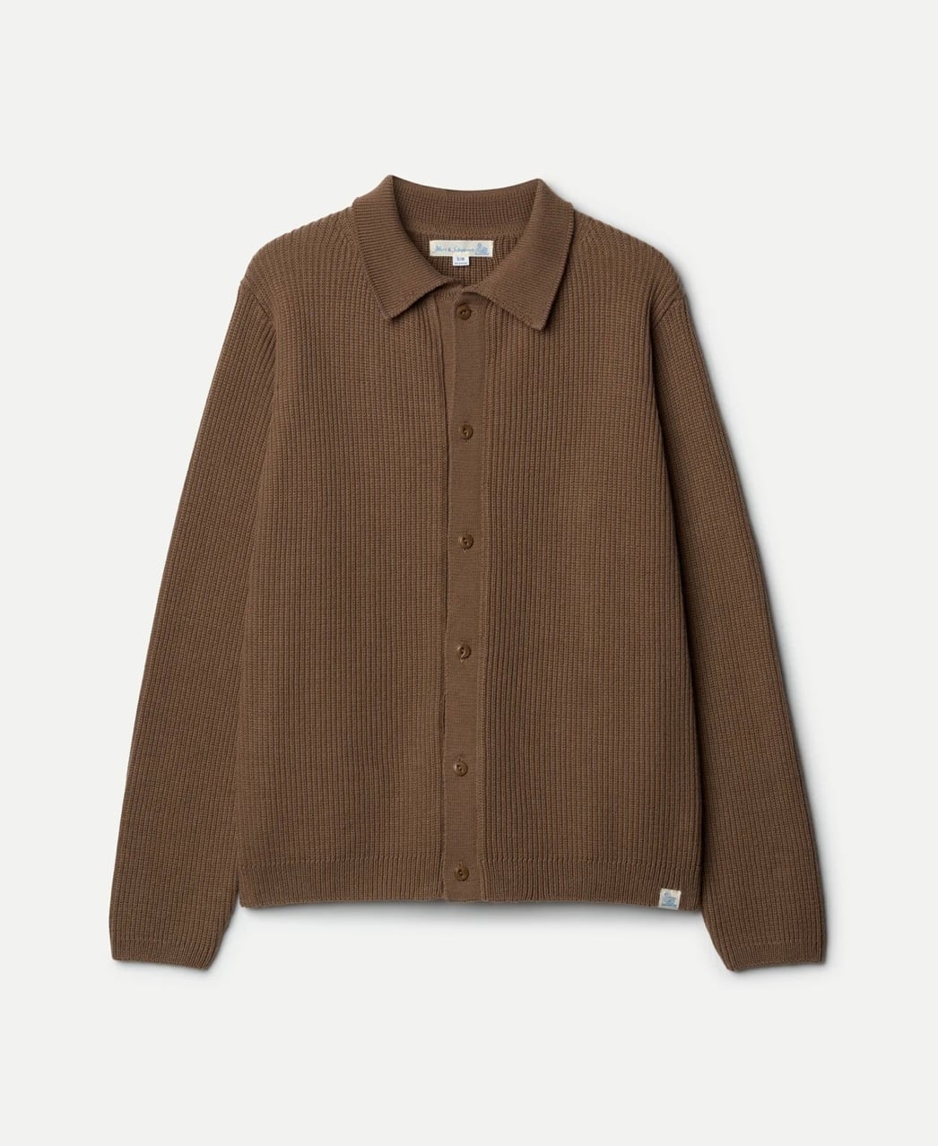 ニットカラー、コロゾナットボタン、そしてリラックスフィットのデザインは、ほのかなレトロな雰囲気と現代的な気楽さを融合させています。