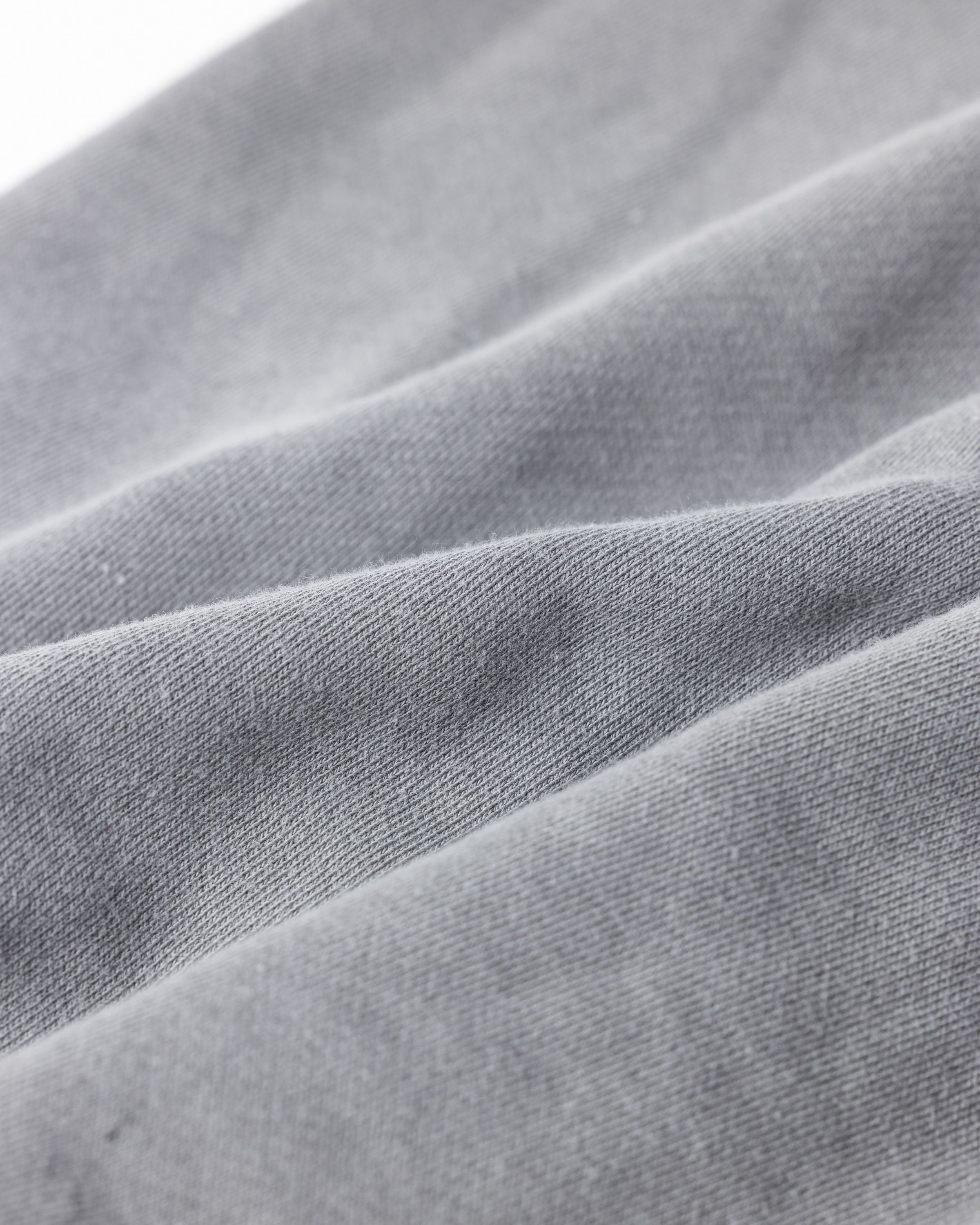 低速で丁寧に編むことで程良いハリとコシを残し、ドライながら繊細なタッチが特徴な編地です。