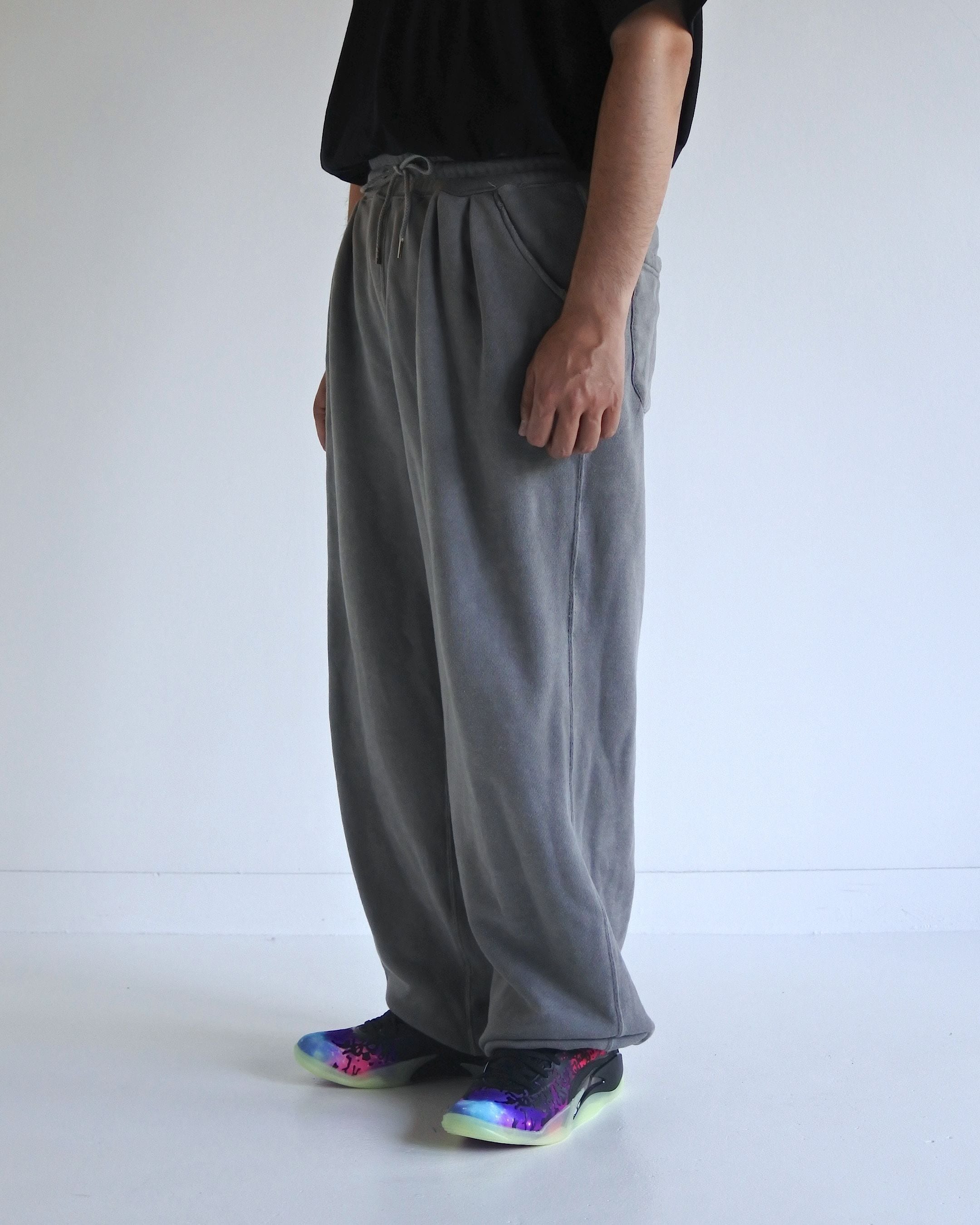 【ANACHRONORM】PIGMENT DYED TUCK WIDE SWEAT PANTS - GRAY