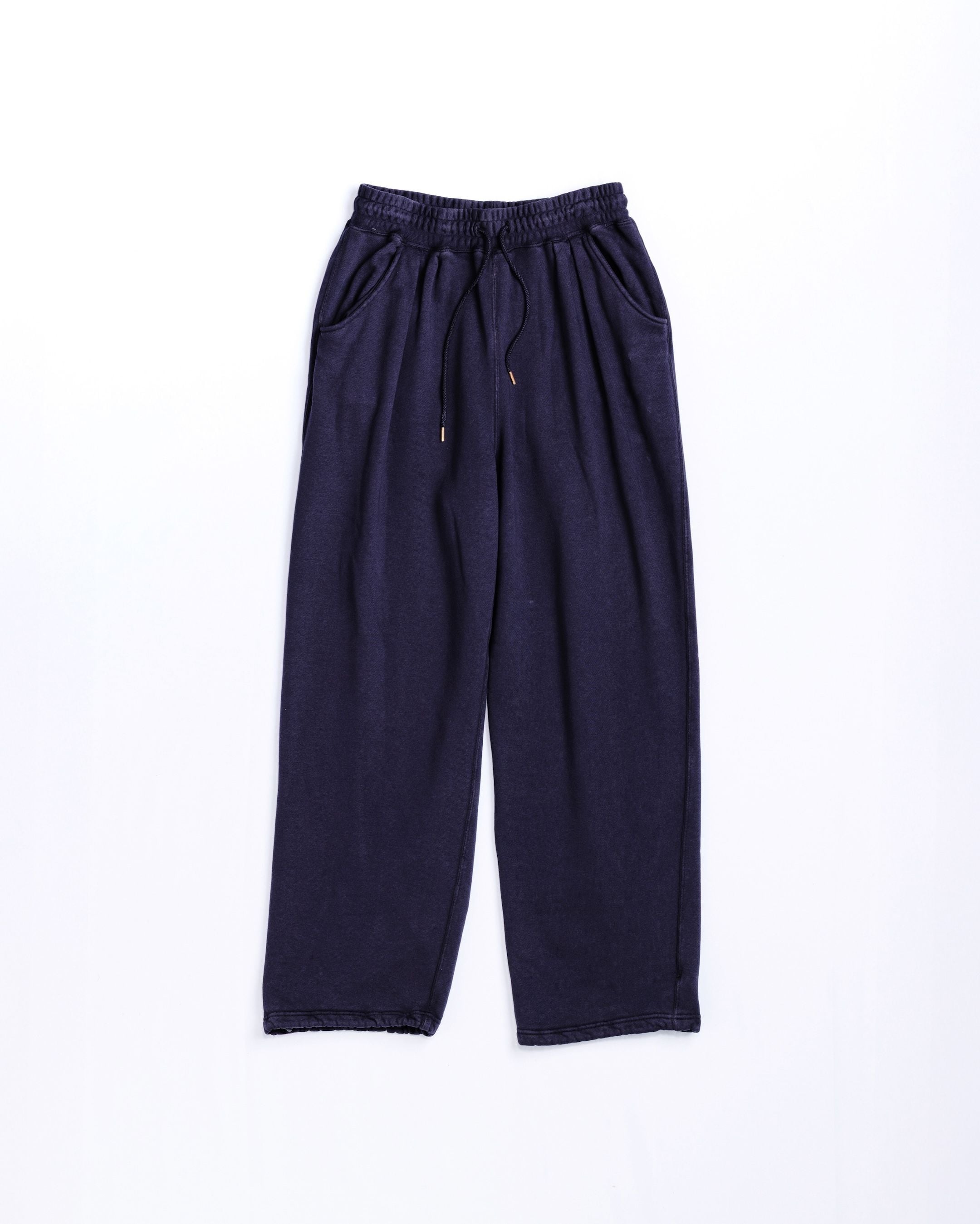 フロントにタックを施すことで、腰まわりに程よいゆとりをもたせたスウェットパンツ。