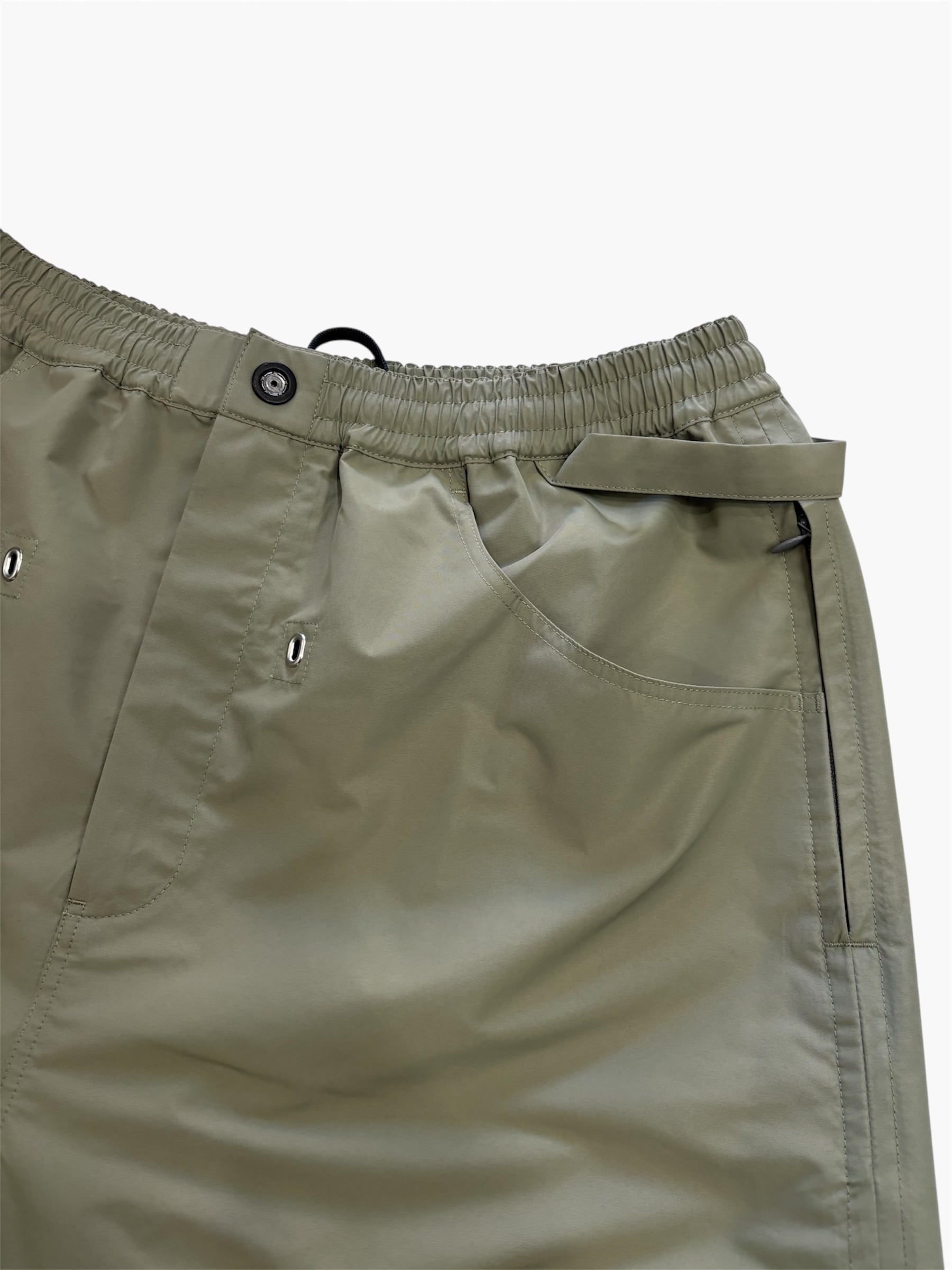防水ウィンドブレーカーパンツ。サイドのジップ は貫通ポケットなので、オーバーパンツとしても 使用可能。