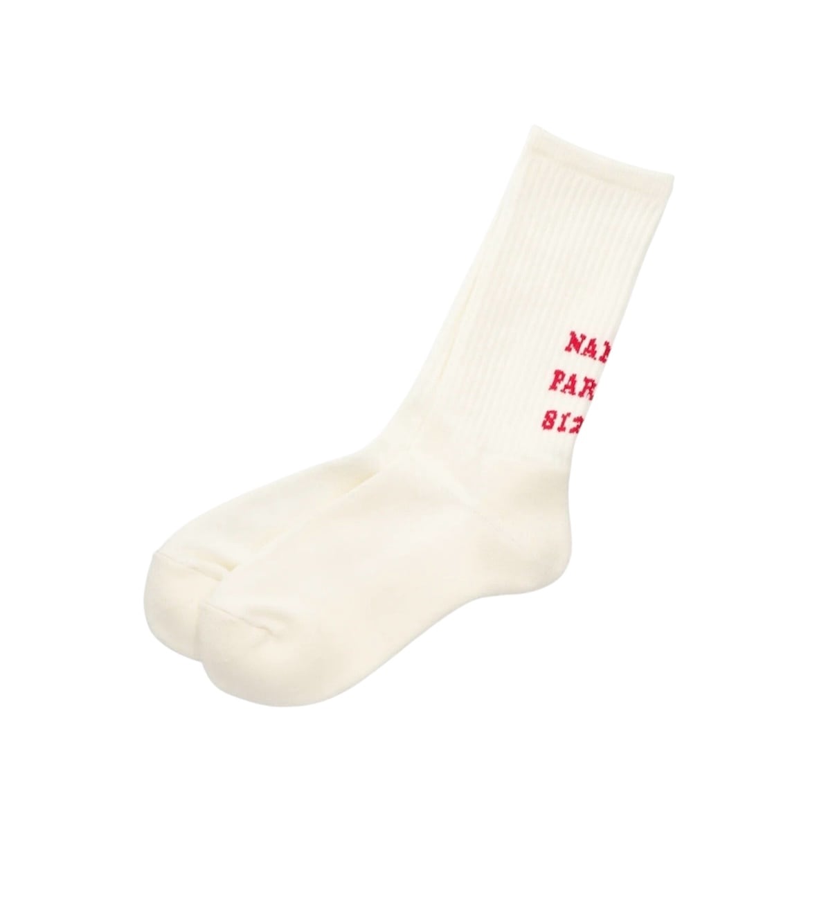 発色の良いカラーリブを採用し、バックスタイルには左右で「NANGA PARBAT」の文字をジャガードで表現。足元にさりげない個性を添えるデザインです。
