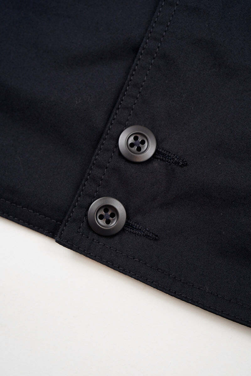 フィッシング・ジャケットの機能を備えており、スナップボタンとボタンをミックスし、スナップボタン付きのポケットや大きなユーティリティポケットなどが特徴です。ボックス型シルエットは汎用性の高いアウターウェアです。