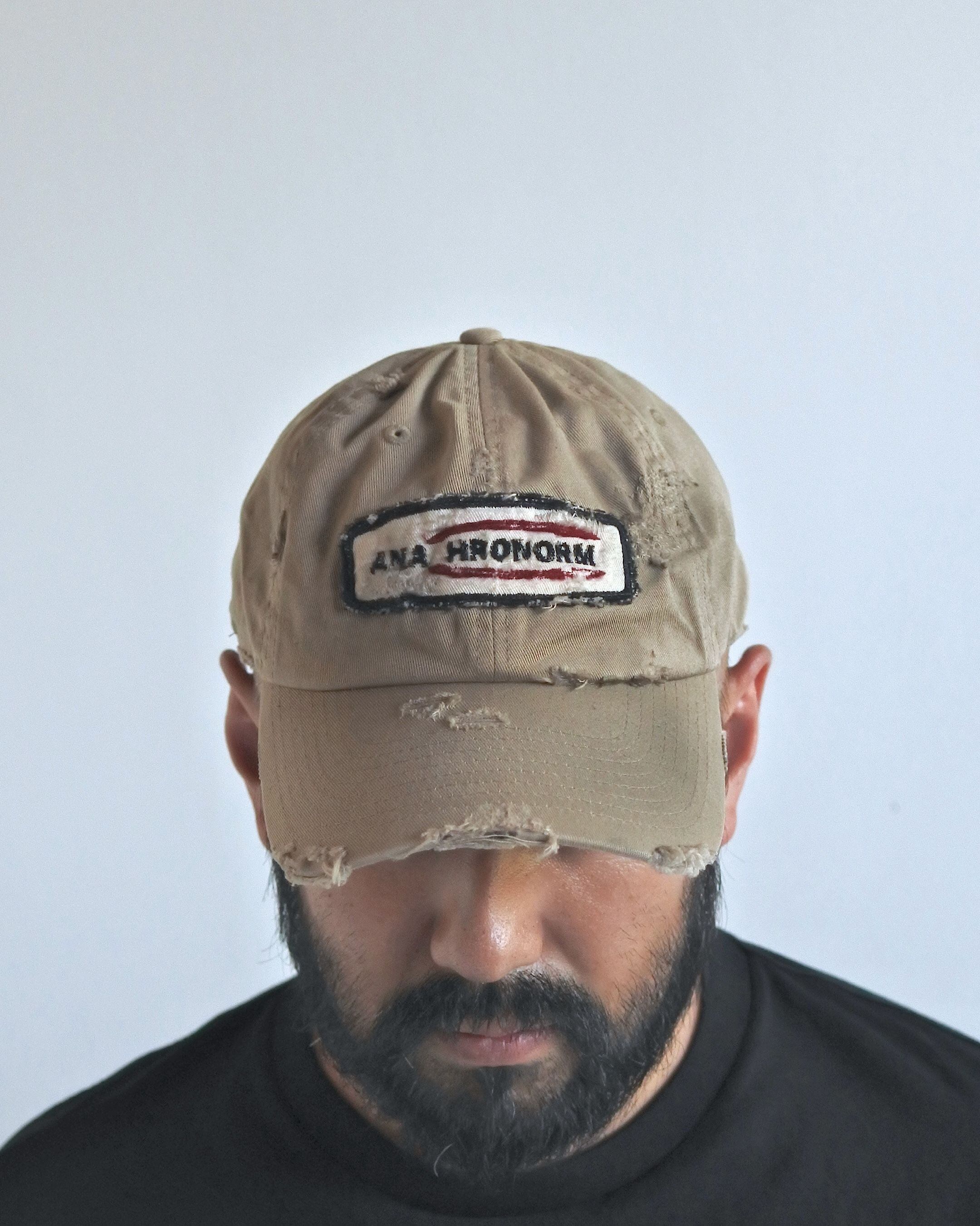 【ANACHRONORM】DISTRESSED PATCH 6PANEL CAP - BEIGE