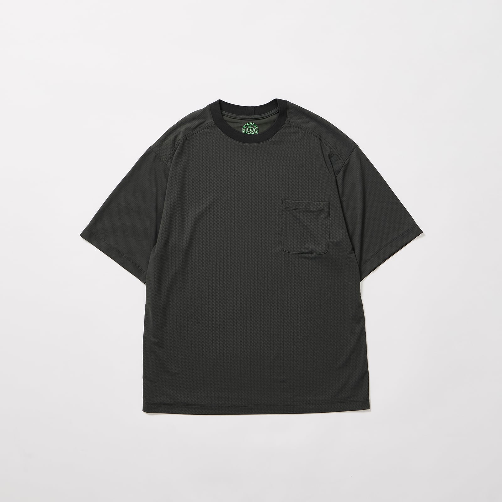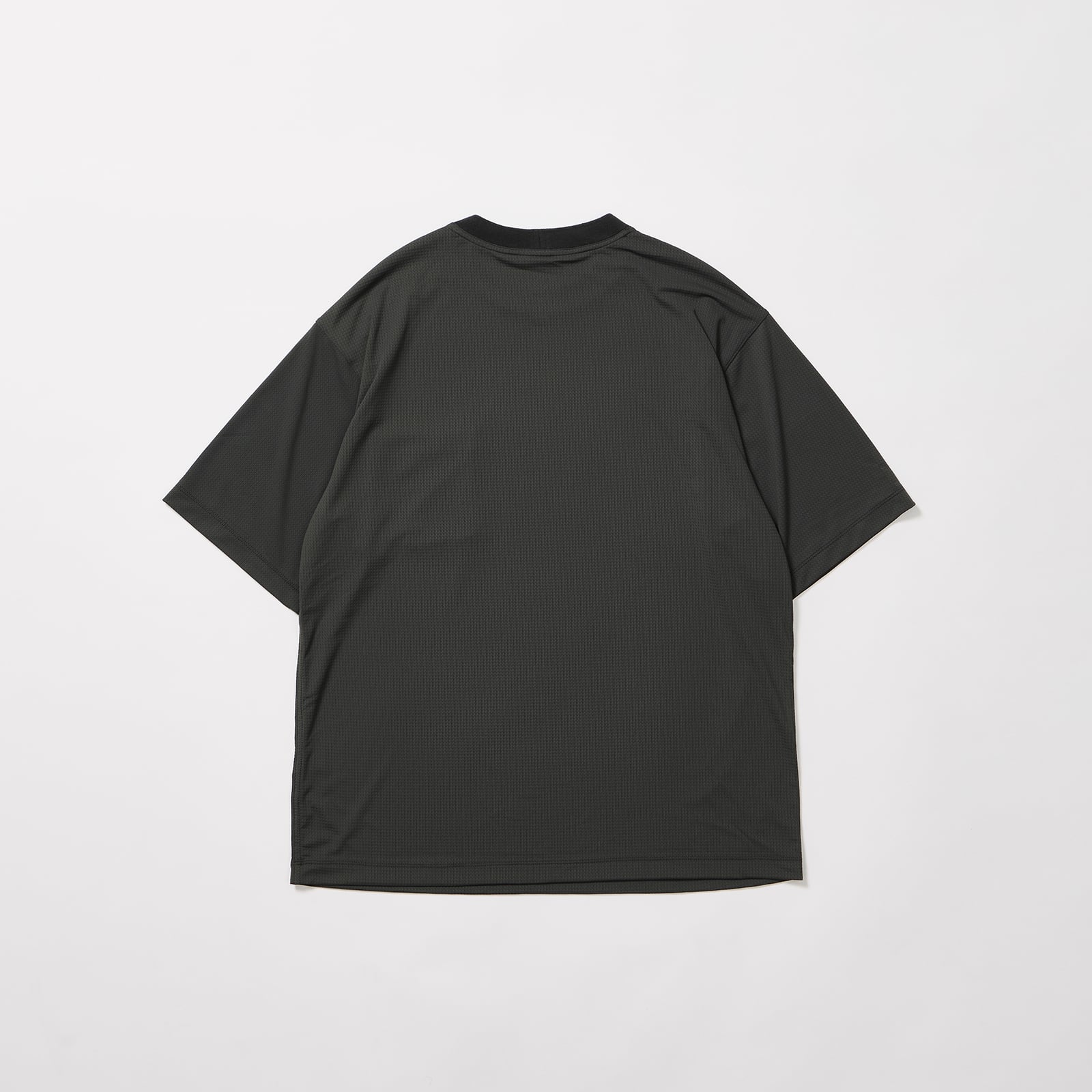 キックバックのよい、柄のようなメッシュ素材を使用したショートスリーブTEE。