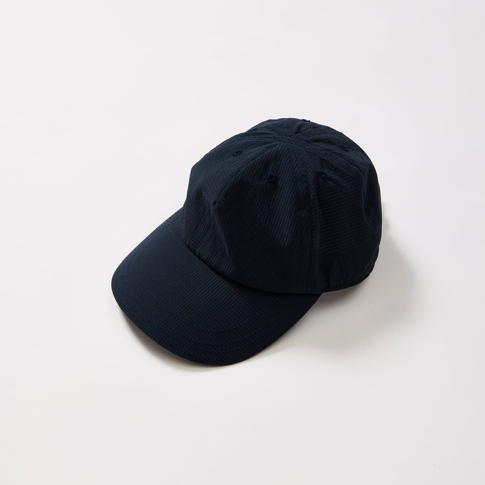 浅めの4パネルキャップ。通気性がとても良い、軽量でドライタッチなリネンライク素材。