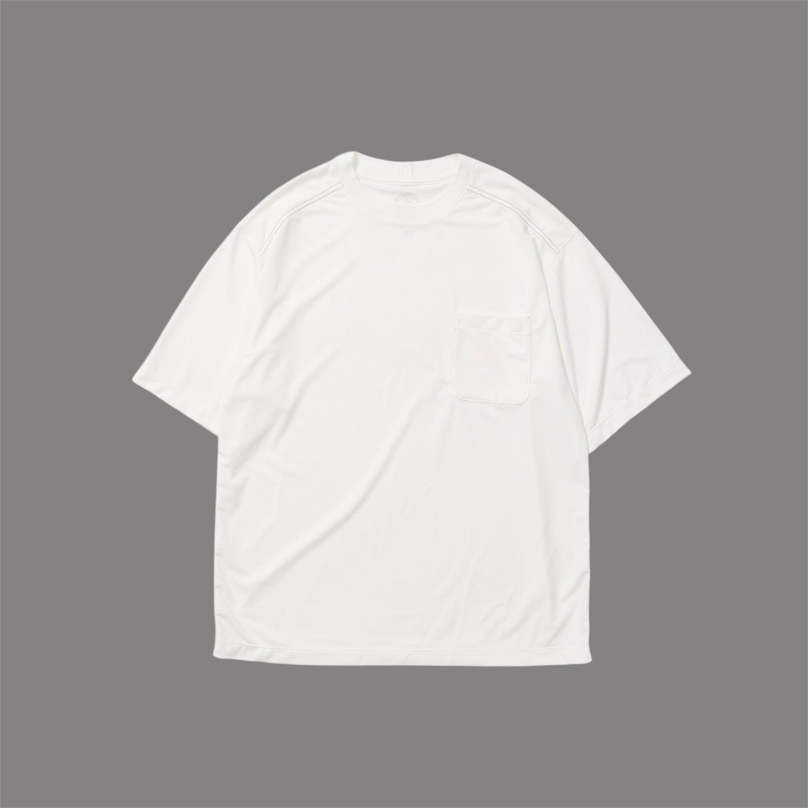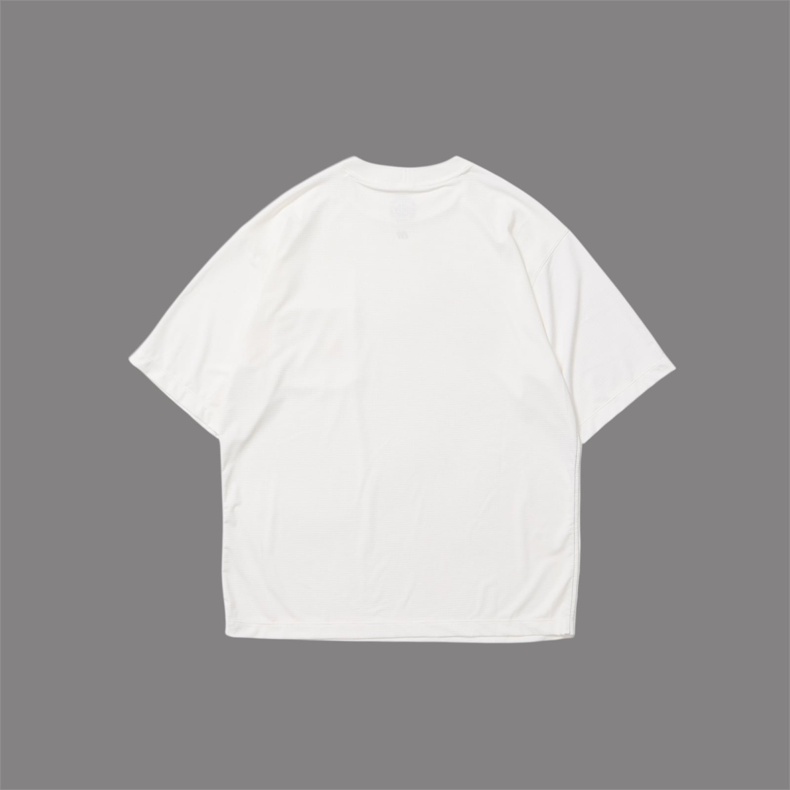 キックバックのよい、柄のようなメッシュ素材を使用したショートスリーブTEE。