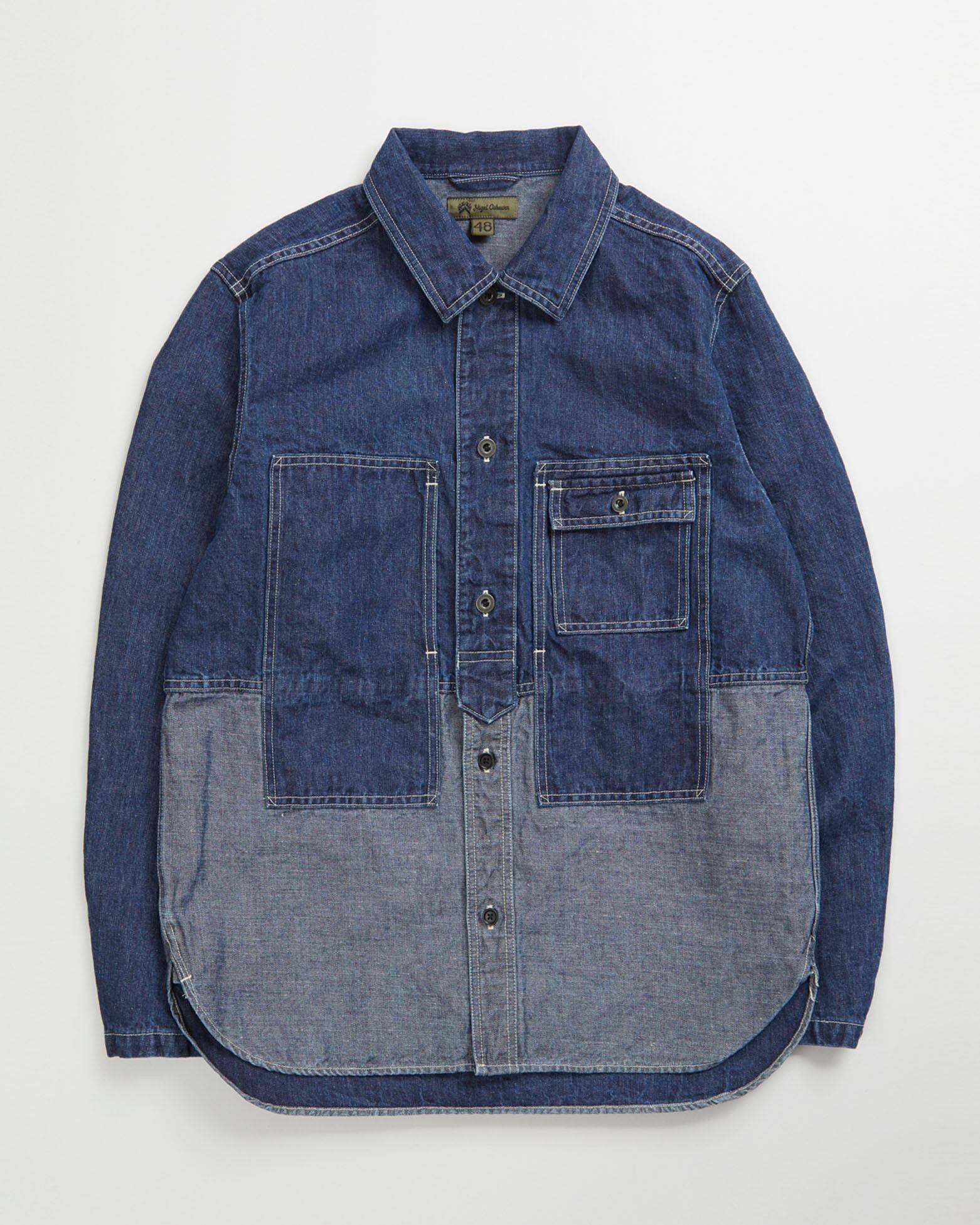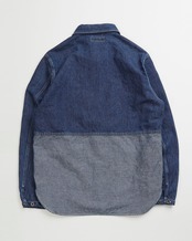 年代の異なるユーティリティーシャツにそれぞれハサミを入れて、縫製でつなぎ合わせたら・・・。そんな遊び心溢れたアイデアで誕生した製品。アイデアだけではなく、本当に洋服を裁断したような段階を踏んで再構築するところにナイジェル・ケーボンの本気度が現れています。